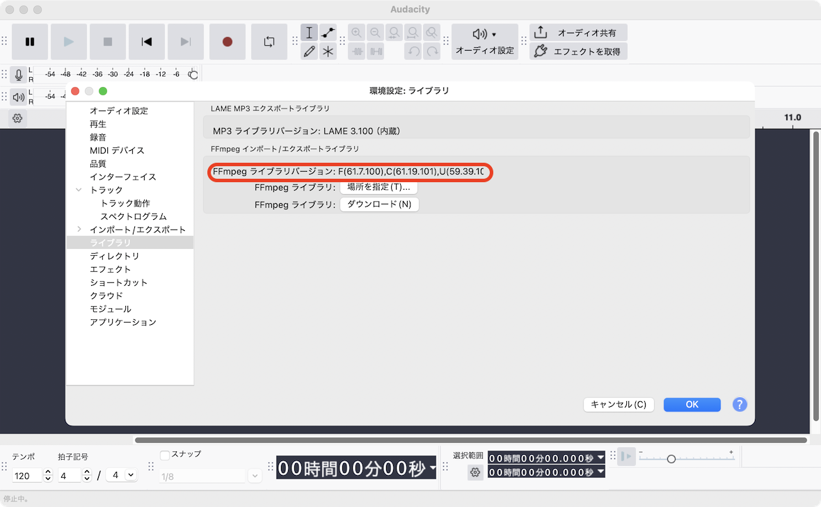 本稿では、Mac版Audacity用ffmpegライブラリを、可能な範囲で新しいものにする方法を説明する。